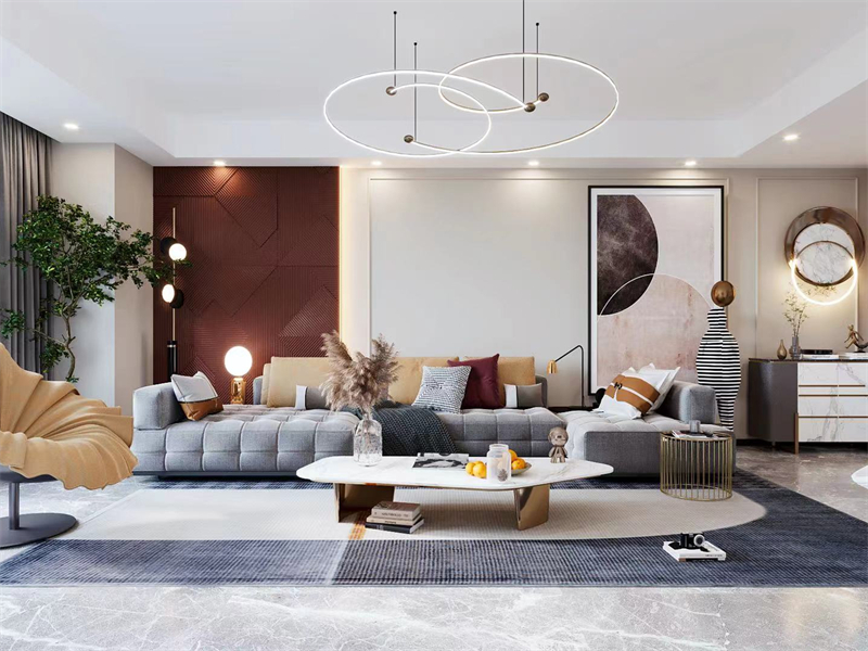本案米棕、深灰等中性主调交织,利落线条勾勒空间轮廓。大理石的雅致、木质的温润与金属细节碰撞,在客厅社交休憩、餐厨家庭互动等场景中,功能与美学共生,以简约大气的布局、时尚细腻的材质,打造出契合意式精致生活方式的雅致居家空间。