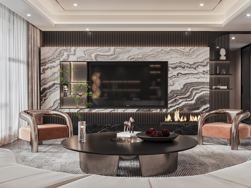 时尚是什么?时尚是以不过时的美感给生活带来惊喜,电视背景墙设计以非对称的美学理念进行设计,低调而雅致不会让人感觉过分的张扬。