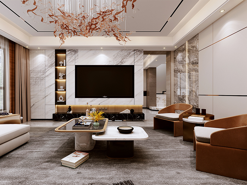 本案中性主调交织,利落线条勾勒空间轮廓。大理石的雅致、金属的精致与木质的温润碰撞融合,在客厅的社交休闲、餐厨的家庭互动、卧室的私密休憩、卫浴的效率整洁场景中,实现功能与美学的共生,打造出契合现代生活方式的雅致居家空间。